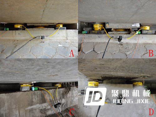 首先我司工作人員對鎮(zhèn)江路段橋梁的跨距、每跨的梁片數(shù)、梁片的結構形式以及橋梁的高度進行現(xiàn)場現(xiàn)場勘察。并查看相關圖紙核實橋梁縱向連續(xù)梁片數(shù),從而初步計算出梁體重量及荷載能力。然后經(jīng)過測量梁片與墩臺之間的實際距離,研究放置千斤頂?shù)奈恢眉芭R時支撐位置。討論現(xiàn)場施工操作人員、觀察人員的位置以及整個施工環(huán)境。