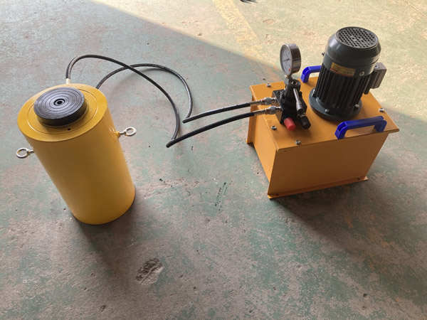 5、使用時先將手動泵的快速接頭與頂對接,然后選好位置,將油泵上的放油螺釘旋緊,即可工作。將放油螺釘旋松,油缸卸荷。